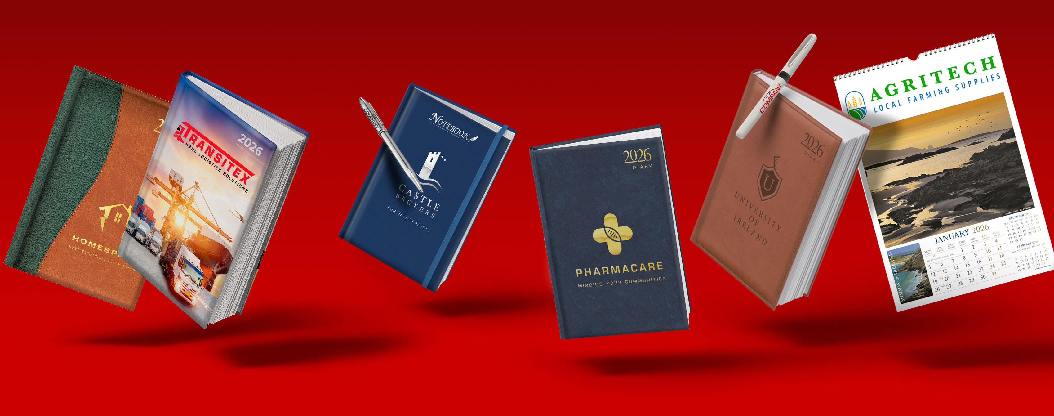 Custom branded diaries, notebooks, calendars and pens for trade, service and corporate business.