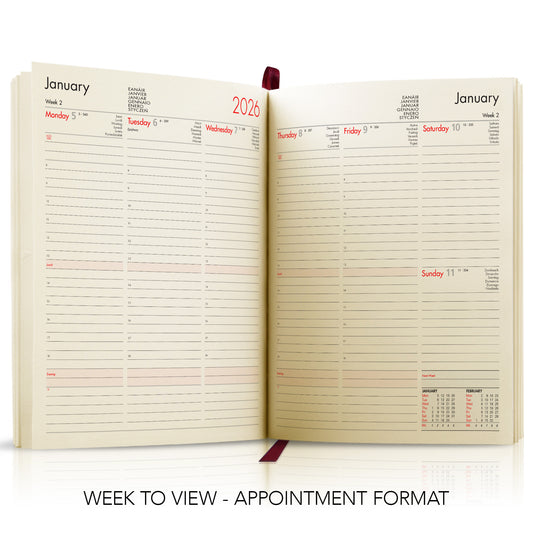 OBrien Diaries' Quarto Diary offers the spacious functionality of an A4 diary in a more compact, slimline design, with an appointment-style layout ideal for busy professionals. Customising this diary with your logo and branding creates an executive, impressive look to keep you organised in style.