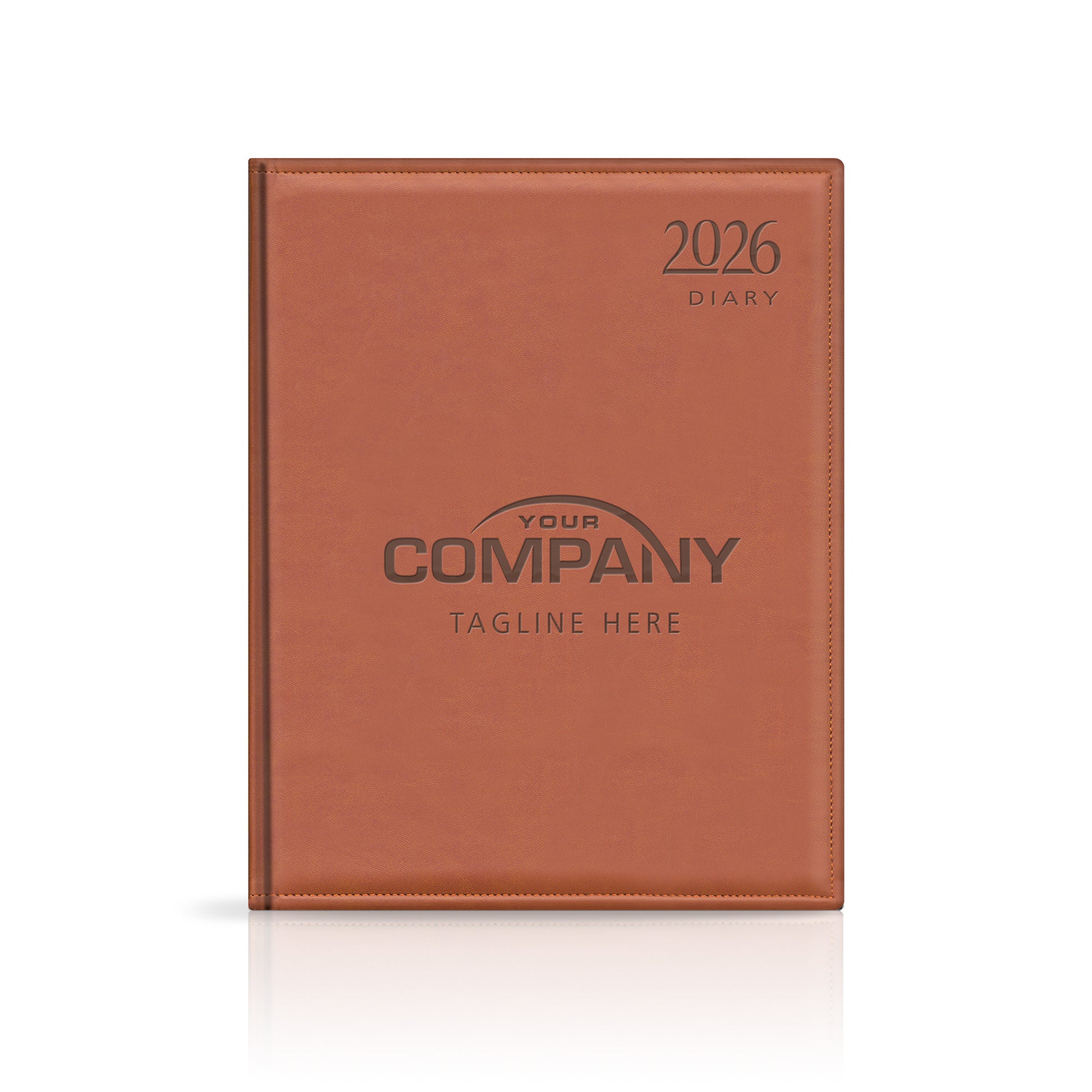This premier diary offers sophisticated style and maximum functionality to elevate your organisation's professional image. The rich padded cover with stitched edge detailing projects an air of prestige.